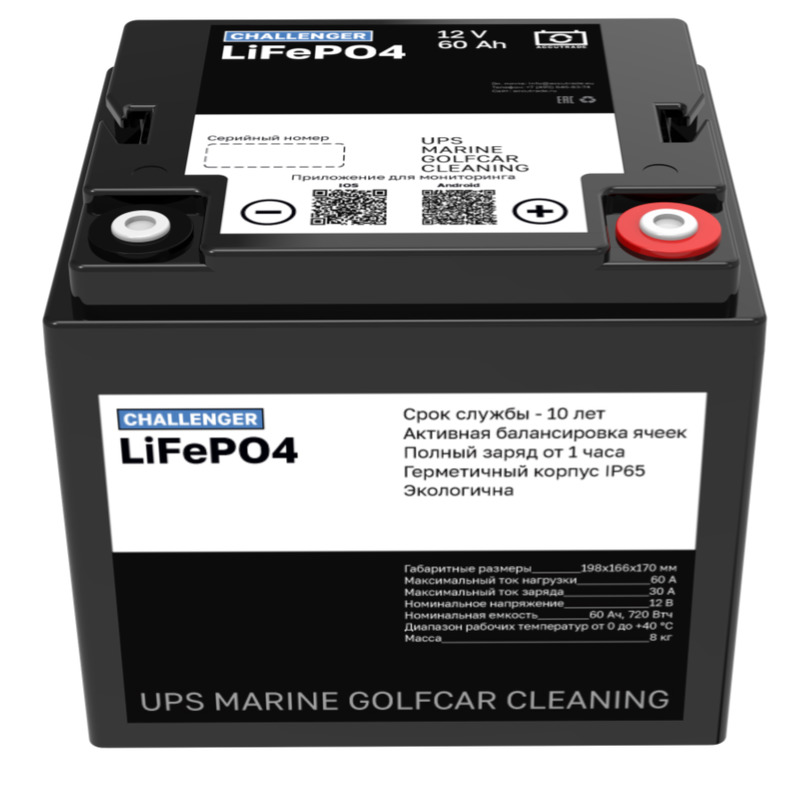 Challenger 12V 60Ah LFP разработан для широкого спектра устройств, например, водно-моторная техника, электрический транспорт, альтернативные источники энергии, системы бесперебойного питания, медицинские устройства или клининговое оборудование – этот аккумулятор обеспечит надежную и стабильную работу в любых условиях!