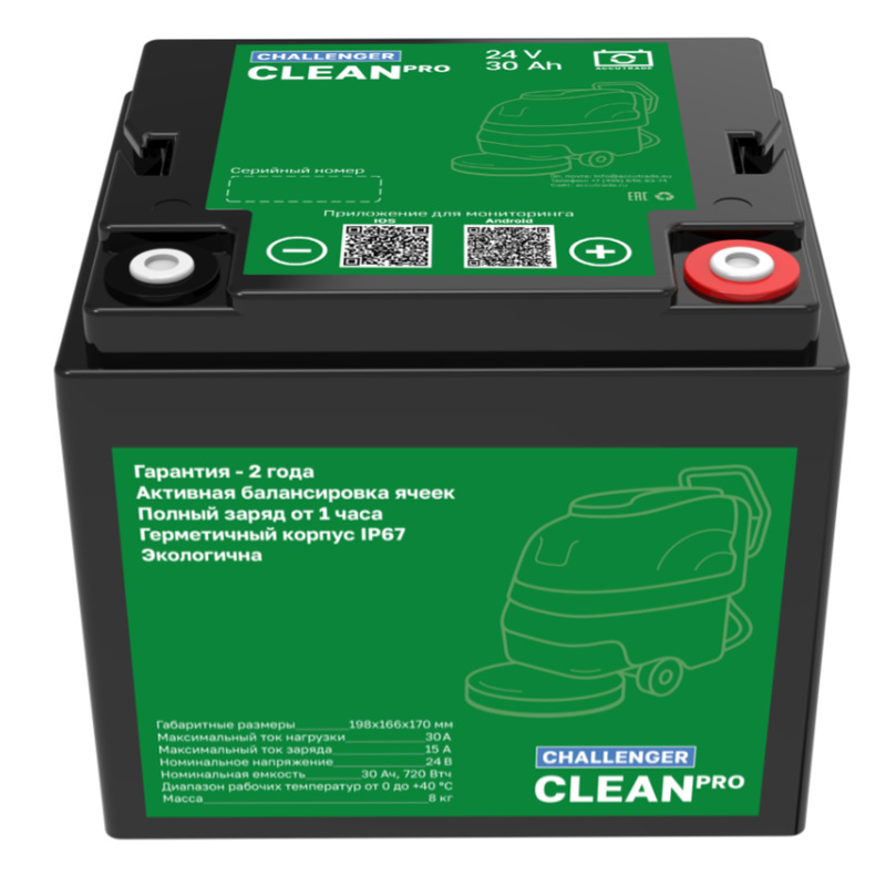 Литий-железо-фосфатный аккумулятор Challenger 24V 30Ah Clean PRO – идеальное решение для вашей профессиональной клининговой техники. Разработанный специально для обеспечения максимальной производительности и надежности, он гарантирует непревзойденное качество работы. Батарея оснащена передовыми системами защиты от перезаряда, глубокого разряда, короткого замыкания и экстремальных температур, что делает ее идеальным выбором для работы в самых разных условиях. А самое главное – ресурс аккумулятора составляет более 3000 циклов с глубиной разряда 80%! Это значит, что вы сможете использовать его в течение длительного времени без необходимости замены.