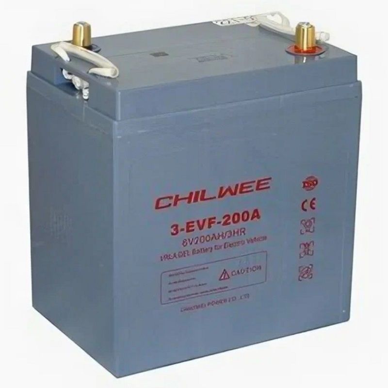 Тяговый аккумулятор Chilwee 3-EVF-200A (ёмкость 226 Ач (по C5), напряжение 6 вольт) изготавливается с применением технологии GEL, электролит представляет собой желеобразную массу. Гелевые батареи имеют большую теплоотдачу, повышенную устойчивость к глубоким разрядам. Аккумулятор является полностью герметизированным и необслуживаемым. Он не требует долива воды в процессе эксплуатации (в сравнении с классическими тяговыми аккумуляторами по технологии WET) и дополнительных усилий со стороны пользователя.