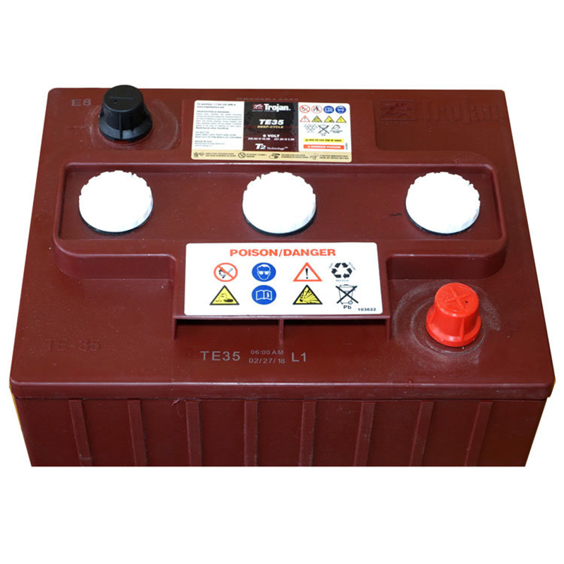Аккумулятор Trojan TE35 представляет собой моноблочную батарею с жидким электролитом, состоящую из 3 ячеек напряжением по 2 вольта, которые последовательно соединены внутри корпуса. Он обслуживаемый, что подразумевает необходимость регулярного контроля уровня электролита и долива воды для поддержания оптимальных рабочих характеристик. При эксплуатации следует соблюдать вертикальное положение аккумулятора, а также заряжать его с помощью специализированных зарядных устройств с соответствующим профилем заряда.
