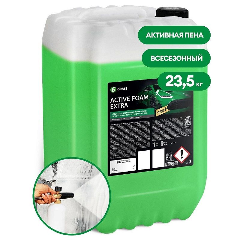 Grass Active Foam Extra - концентрированное средство для бесконтактной мойки легкового и грузового транспорта. Без труда удаляет дорожную пыль, грязь, масло, следы от насекомых. Создает стойкую обильную пену, которая легко смывается с поверхности. Не наносит вреда алюминиевым, никелированным поверхностям и другим покрытиям из сплавов цветных металлов. Содержит антикоррозионные добавки.