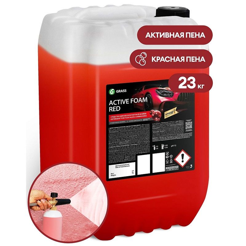 Активная пена Grass «Active Foam Red» - концентрированное средство для бесконтактной мойки легкового и грузового транспорта. Без труда удаляет дорожную пыль, грязь, масло, следы от насекомых. Создает стойкую пену розового цвета, которая легко смывается с поверхности. Не наносит вреда алюминиевым, никелированным поверхностям и другим покрытиям из сплавов цветных металлов. Содержит антикоррозионные добавки.