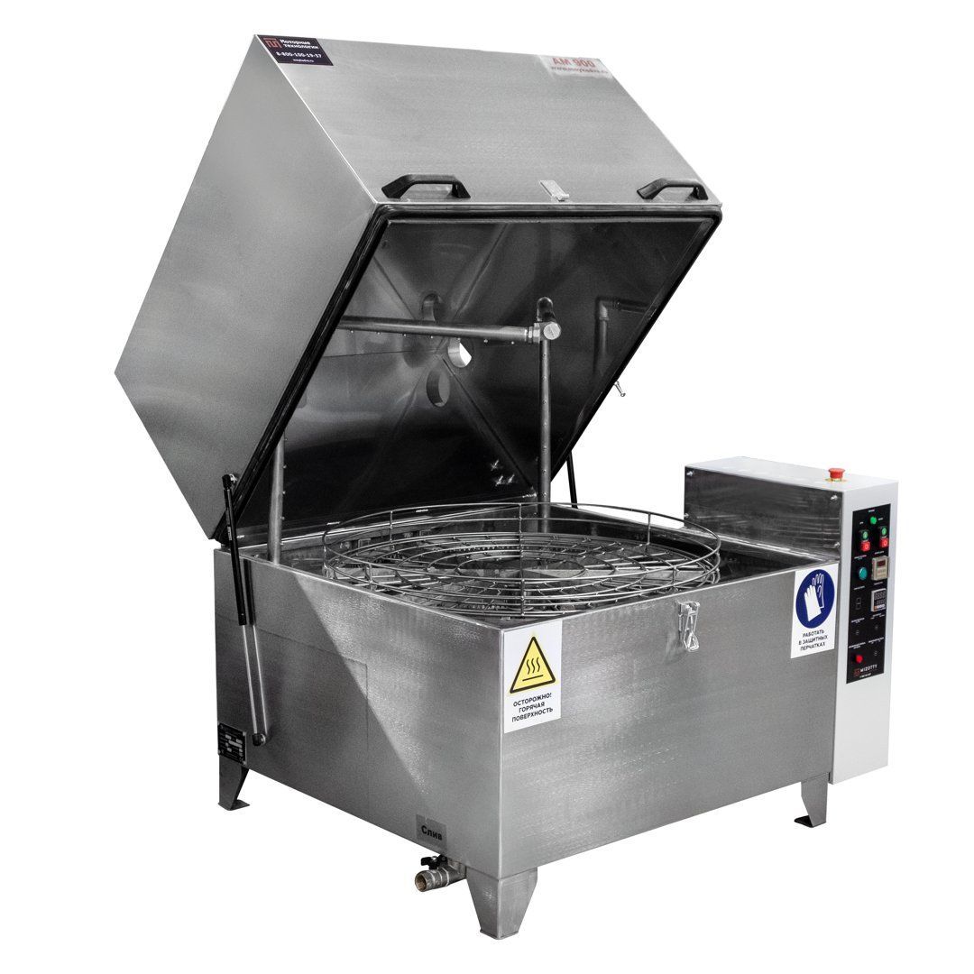 Серия AM900 AK комплектуется электромеханическим приводом вращения корзины, нагревательным элементом мощностью 3х1,5 кВт, насосом ручного режима мощностью 2,2 кВт и производительностью 720 л/час., баком из нержавеющей стали толщиной 2 мм и объёмом 120 литров, корзиной грузоподъёмностью 250 кг, цифровой системой контроля температуры, цифровым реле времени и функцией аварийного останова. В расширенную комплектацию входит: 2 педали, автономный насос, промывочный и пневмопистолет, окно с LED подсветкой.