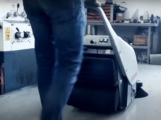 CS-50 компактная подметальная машина укомплектована тягой на колеса, а значит с очень высокой проходимостью. Ручка сделана из удобного пластика, что делает работу с рычагом управления чрезвычайно простой. Если поверхность, которую нужно подметать, мокрая или влажная, следует выключить ракель. Боковая щетка облегчает уборку в углах и вдоль стен.