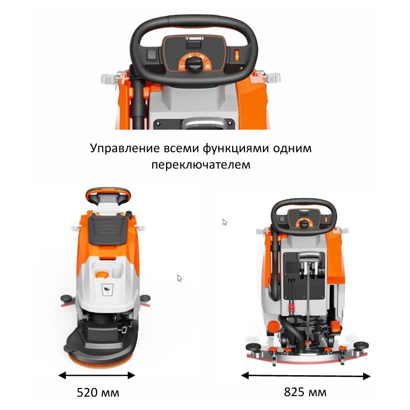 Оператор управляет машиной сзади, движение осуществляется вручную. Усилие толкания по ровной поверхности — не более 2–3 кг. Подходит для: