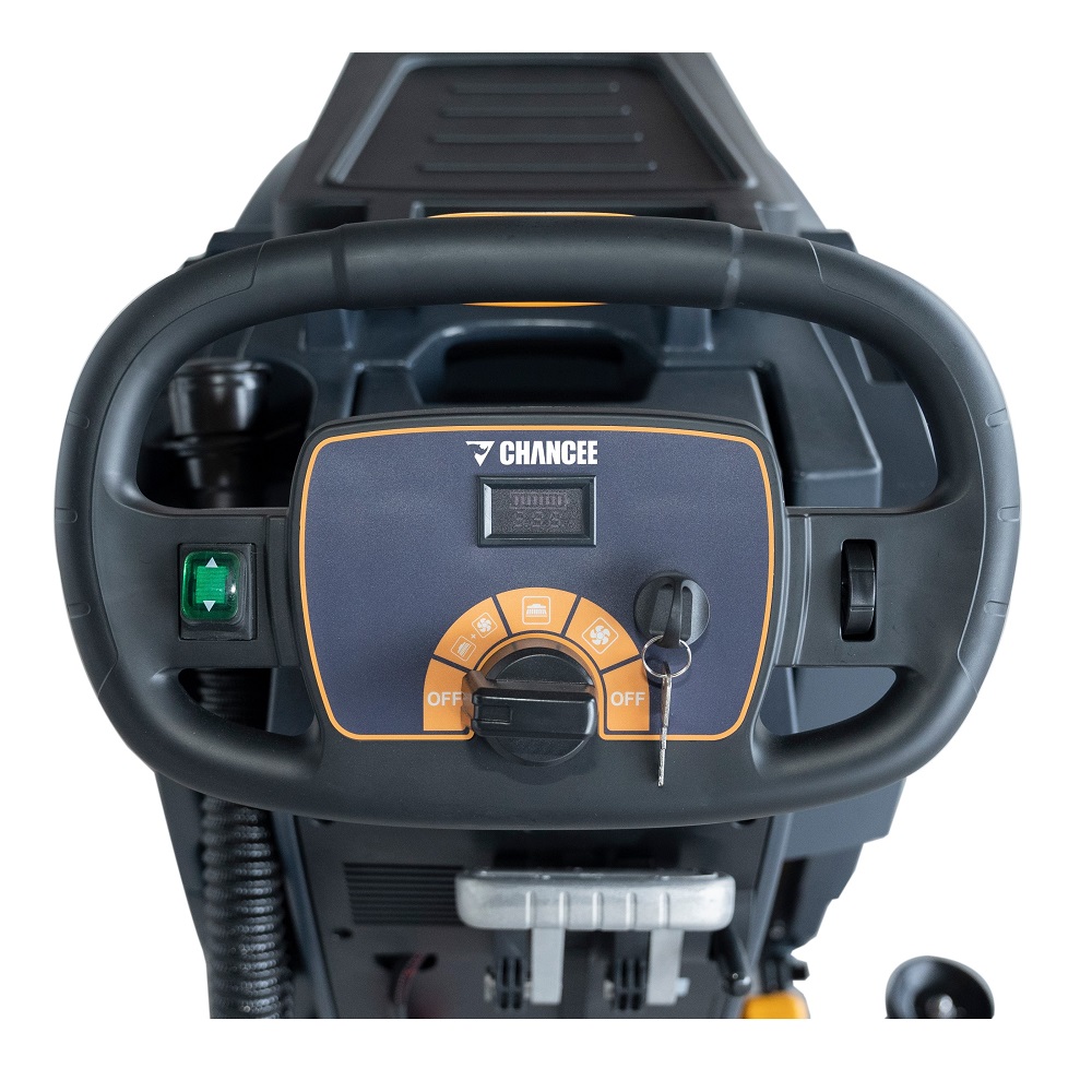 Chancee XMD50 Self-walking современная аккумуляторная поломоечная машина, разработанная для эффективной уборки коммерческих и общественных пространств площадью до 2500 м². Благодаря автономной работе от двух гелевых аккумуляторов (12 В, 113 А·ч) она обеспечивает до 3 часов непрерывной эксплуатации без необходимости подключения к сети, что делает её идеальным решением для школ, торговых центров, автосервисов и складских помещений. Удобство управления достигается за счёт эргономичной конструкции оператору требуется прилагать минимальное усилие (2-3 кг) для перемещения машины, а вращающаяся дисковая щетка диаметром 500 мм гарантирует качественную очистку даже неровных и шероховатых поверхностей.