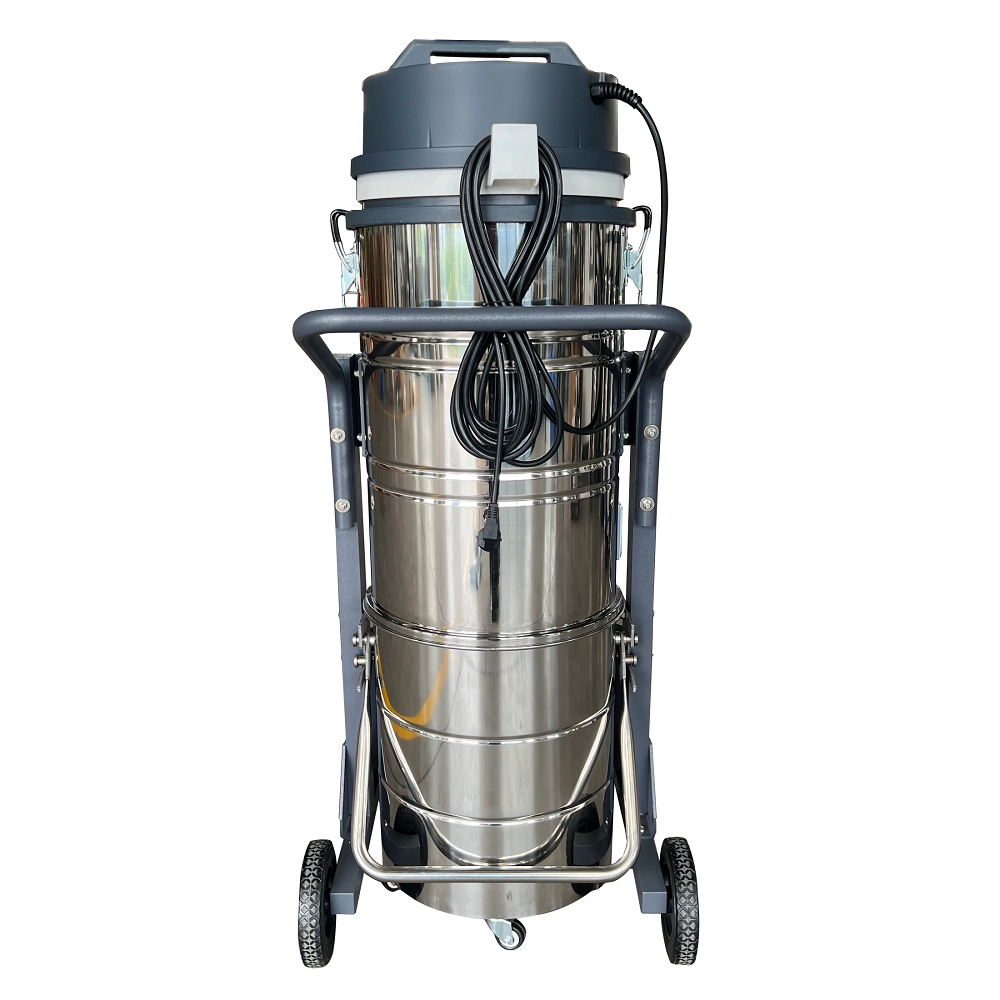 Конструктивные особенности пылесоса включают усовершенствованную систему фильтрации с звездообразным фильтрующим элементом площадью 26 800 см² из моющегося нетканого материала. Циклонный сепаратор предварительно отделяет крупные частицы, снижая нагрузку на основную фильтрующую систему. Корпус из нержавеющей стали гарантирует устойчивость к коррозии и механическим воздействиям, а вместительный контейнер объемом 100 литров с откидной системой упрощает процесс обслуживания. Функция ручной обратной продувки фильтра позволяет проводить очистку без демонтажа элементов, что значительно сокращает время простоя оборудования.