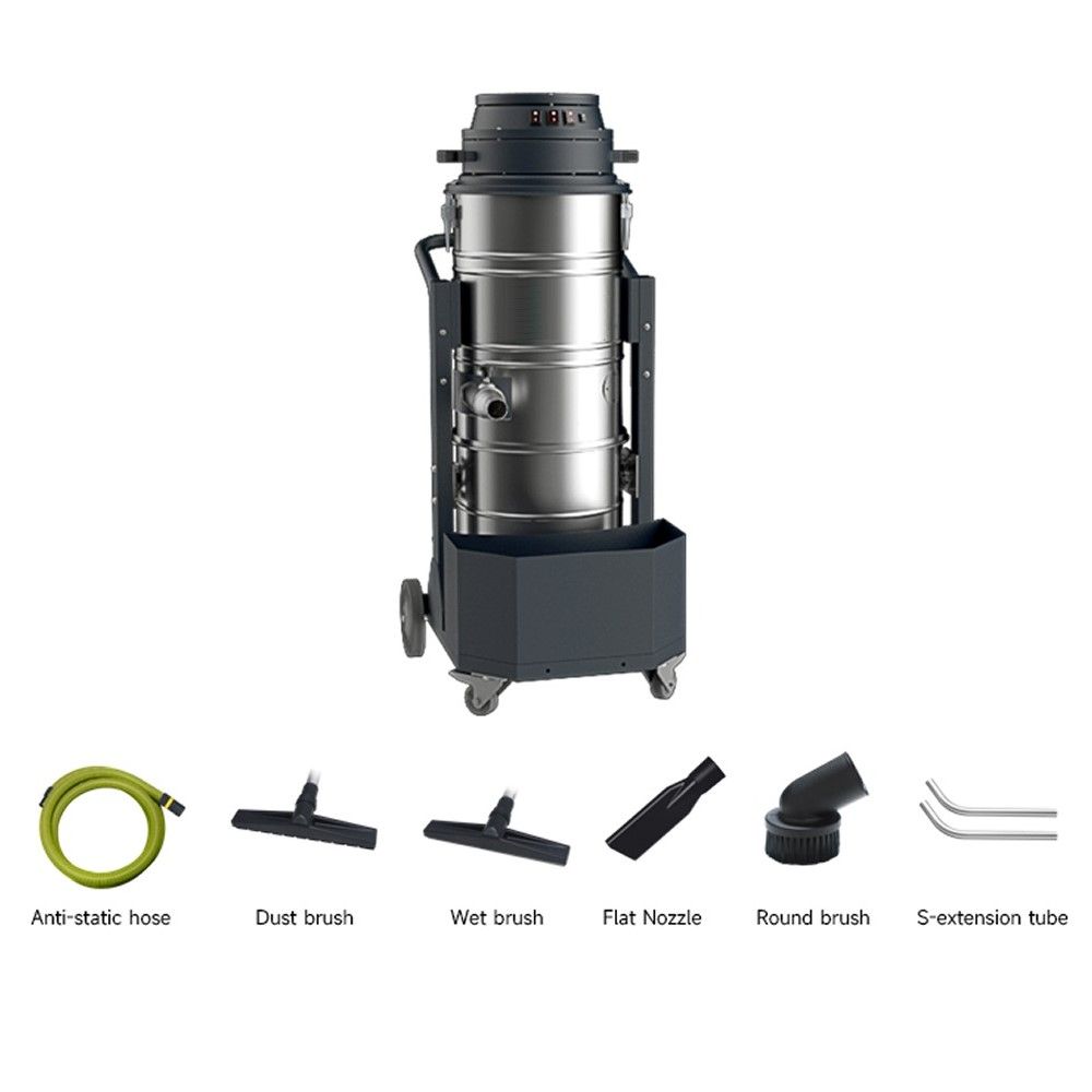 Ключевой особенностью пылесоса является комбинированная система очистки, сочетающая циклонную сепарацию и автоматическую продувку HEPA-фильтра класса H13. Циклонный сепаратор предварительно улавливает до 80% твердых частиц, значительно снижая нагрузку на фильтрующую систему. Электронная система автоматической очистки поддерживает оптимальную производительность без необходимости остановки оборудования. Корпус из утолщенной нержавеющей стали и съемный контейнер объемом 100 литров обеспечивают долговечность и удобство обслуживания. Модель соответствует строгим требованиям пищевой, металлообрабатывающей и других видов промышленности.