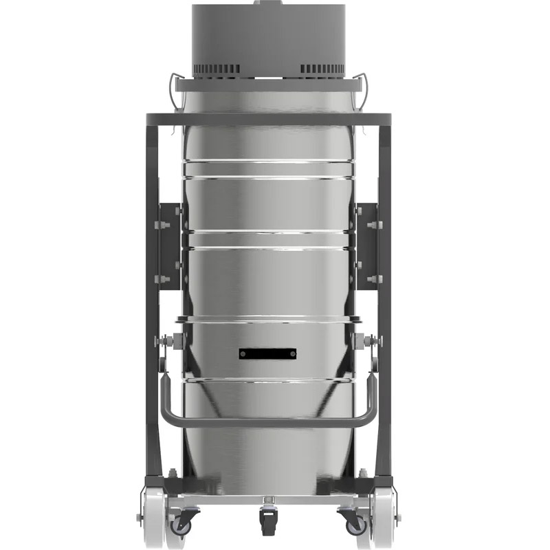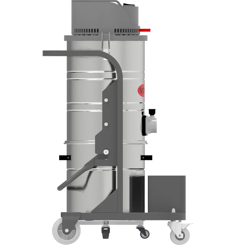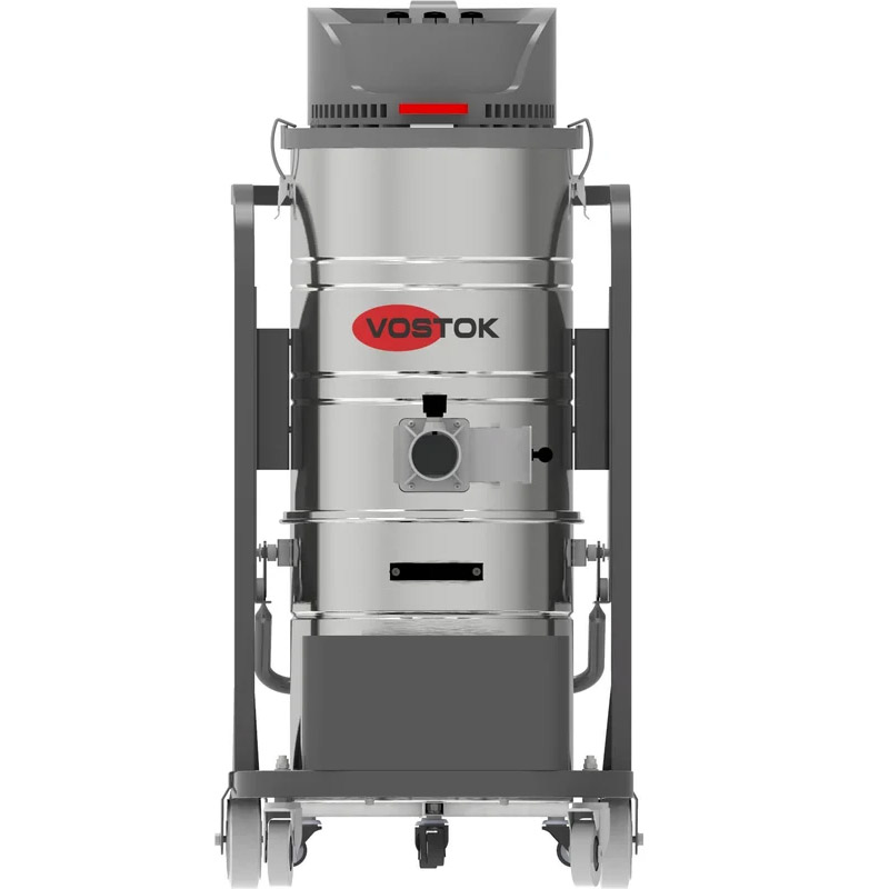 VOSTOK PDW — это мощный промышленный пылесос, предназначенный для профессиональной уборки в производственных, строительных и складских помещениях. Оснащён тремя независимыми моторами по 1,2 кВт, он эффективно справляется с удалением как сухих, так и влажных загрязнений: от бетонной пыли и металлической стружки до жидкости и строительного мусора. Пылесос оборудован прочной металлической рамой, компактным корпусом и вместительным баком объёмом 75 литров, который легко очищается благодаря откатной конструкции с ручкой.