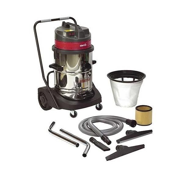 Starmix GS 2078 PZ -  это мощный и производительный универсальный пылеводосос. Благодаря своей универсальности, данный пылесос может использоваться в совершенно различных отраслях. Две мощных турбины и комплект отличных аксессуаров, позволяют пылесосу легко справиться как с сухой пылью, так и со сбором различных жидкостей. Пылесос установлен на удобной тележке, оснащенной механизмом опрокидывания бака, что делает большой пылесос удобным и легким в эксплуатации. Два фильтра (фильтр-корзина и картриждный фильтр), установленные на пылесосе позволяют собирать даже мелкую пыль, однако при сборе строительной пыли, необходимо следить за степенью загрязнения корзины, т.к. "забитый" пылью фильтр-корзина не может пропускать воздух, что может привести к выходу из строя пылесоса. Для сбора больших обхемов мелкой строительной пыли необходимо использовать мешки для сбора пыли.  Бак объёмом 78 л подразумевает, что при уборке, в него поместится 57 л сухой грязи или 50 л жидкой грязи (воды)