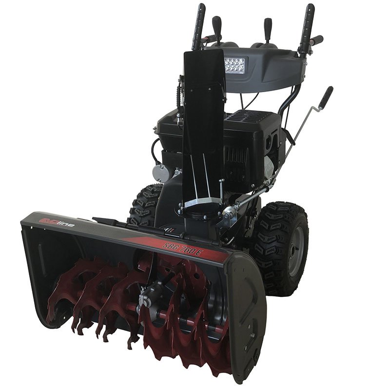 Снегоуборщик оснащен богатым функционалом: электрозапуск от розетки 220 В, подогрев рукояток, яркая LED-фара, автоматический дифференциал и система регулировки высоты ковша в трех положениях. Управление направлением выброса снега удобно размещено на панели оператора, а трансмиссия с шестью скоростями вперед и двумя назад позволяет легко выбрать комфортный темп движения. Все это делает EVOline SBG 760 E универсальным и практичным решением для частных и хозяйственных нужд.